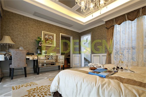 本案设计注重线条的搭配和颜色对于空间气氛的营造,在造型设计的构图理论中吸取其他艺术或自然科学的概念,把传统的构件通过重新组合寓情于景,追求品位与色彩搭配的和谐。大厅运用大量白色元素,现代感十足,却不失低调奢华与柔美的感觉;二层房间运用淡雅的颜色,不张扬的美充满了温馨却贵气有余。