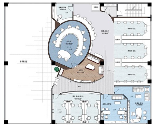 恒声皮具有限公司位于花都国际皮革城,主要以生产女士包、男士包、旅游包等高档皮包并出口东南亚等国的一家现代国际皮具公司。本案主张从人的主观感性和心灵深处的‘直觉’中去寻找艺术的原动力,大胆突破空间设计的传统藩篱,强调的是空间形态与功能布局的协调,注重不同功能空间的气氛营造。在公共区域以特殊的空间构造通过运用材质对比力求体现具有收藏的艺术空间,呈现国际化,使本案整体空间格调具有现代感、时尚感。